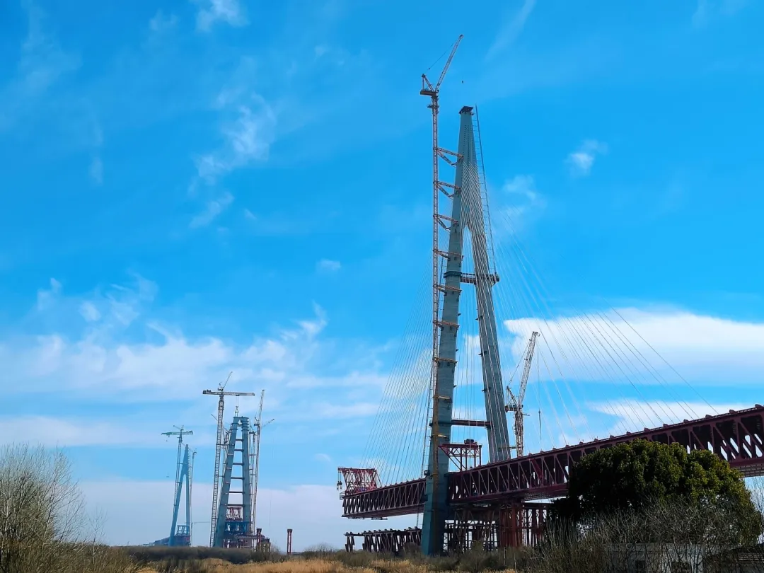 安徽省馬鞍山公鐵兩用長江大橋主汊航道橋,是新建巢湖至馬鞍山城際鐵路關鍵控制性工程,是目前世界上在建的跨度最大 (主跨2x1120米) 的三塔兩主跨斜拉橋,同時也是聯長最長、塔高最高的公鐵兩用斜拉橋。