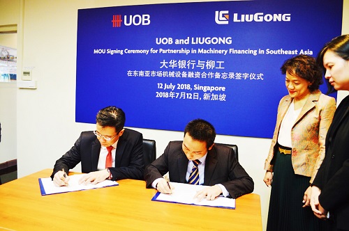 7月12日,股份公司與大華銀行戰略合作備忘錄簽約儀式在柳工新加坡公司舉行,柳工將攜手大華銀行,為東南亞客戶提供工程機械金融服務。股份公司亞太公司總裁陳灝,大華銀行有限公司董事、總經理、產業戰略規劃部負責人周經偉出席儀式并共同簽署了備忘錄。