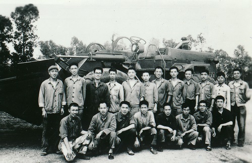 1971年,Z450裝載機試制小組成員在產(chǎn)品前留影。
