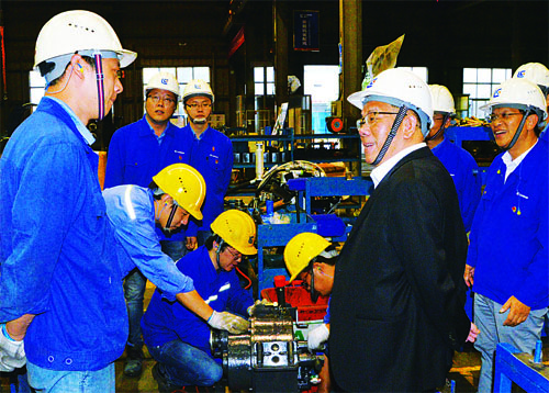 10月20日下午,公司黨委書記、董事長曾光安到江蘇柳工檢查并指導工作。曾光安視察了江蘇柳工的生產現場,詳細了解了相關情況,同時對現場一線員工進行了親切慰問,提醒他們要注意安全,確保安全生產。